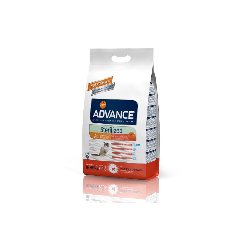 Alimento de alta gama indicado para gatos esterilizados que: Ayuda a prevenir a obesidad en gatos esterilizados: Gracias a un nivel reducido de energía metabolizable, un nivel elevado de fibra para favorecer la saciedad, y un aporte elevado de proteínas y moderado de materia grasa para ayudar el mantenimiento de la masa muscular. Ayuda a disminuir el riesgo de problemas urinarios: Facilitando un pH adecuado, aumentando el nivel de sodio para aumentar la ingesta de agua y la diuresis, y aportando glucosaminoglicanos que ayudan a controlar la formación de cálculos urinarios. Mejora la sensibilidad a la insulina: Al tener un aporte reducido en glúcidos y utilizar la cebada como fuente principal de los mismos proporcionando una liberación lenta de carbohidratos.
