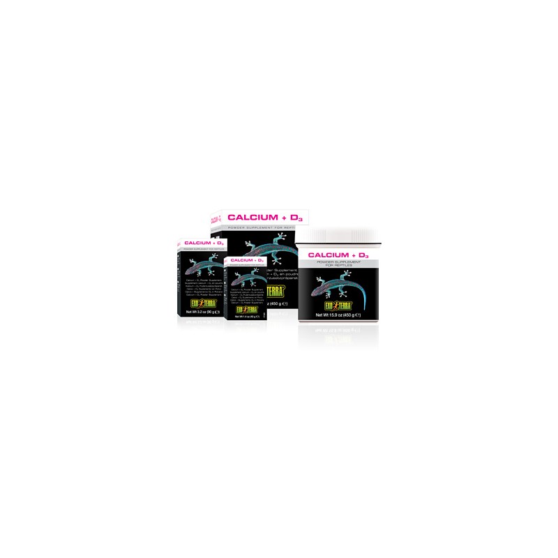La deficiencia de calcio es el mayor problema alimenticio de reptiles en cautiverio. Exo Terra Calcio + D3 Suplemento en Polvo contiene altos niveles de calcio libre de fósforo, como también una cantidad balanceada de vitamina D3 para una óptima absorción del calcio y para ayudar asegurar una salud a largo plazo. La vitamina D3 ayuda a una apropiada absorción del calcio y es vital para reptiles en cautiverio no expuestos a luz solar natural o luz ultravioleta. Exo Terra Calcio + D3 Suplemento en polvo es un alimento complementario para reptiles.