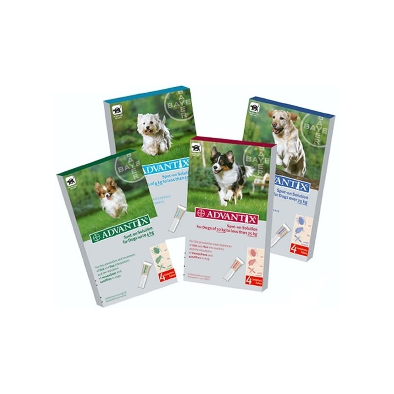 Antiparasitario externo Advantix para perros .Este producto de Bayer es de gran calidad y ofrece una gran eficacia a la hora de prevenir y eliminar parásitos como mosquitos, pulgas y garrapatas. Para perros pequeños, que pesen entre 10 y 25 kg. Contiene 4 unidades.
