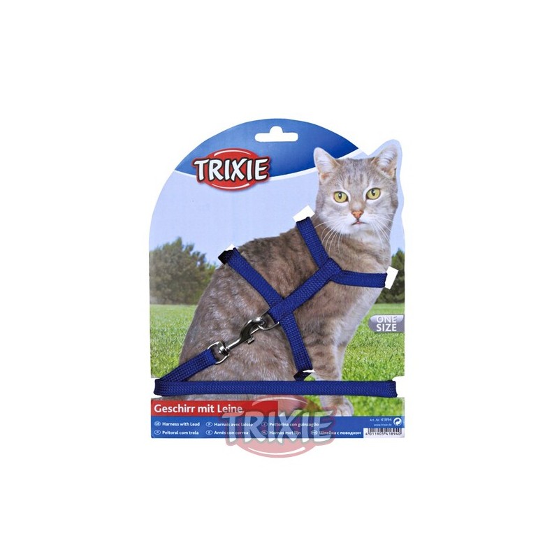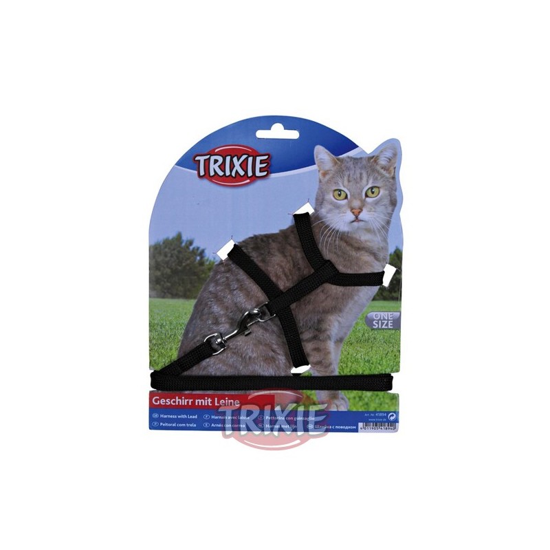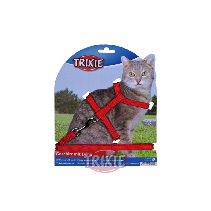 Set Arnés y correa gatos, largo 1,25 mt, medida 22-42cm/10mm, nylon, col surtidos. Este conjunto de nylon para gatos contiene un arnés con hebillas de metal, así como una correa. Las tiras reflectante hacen que los gatos sean visibles para los conductores al atardecer y durante las horas de oscuridad y así ayudar a mantener la seguridad el gato. El conjunto está disponible en varios colores. Medidas de la correa 1,25 m y el arnés 22-42 cm/10 mm.