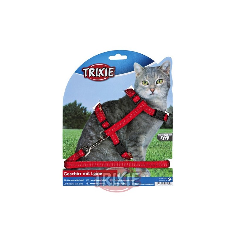 Set Arnés y correa gatos, largo 1,20 mt, medida 26-44cm/10mm, nylon, col surtidos. Este juego para gato está hecho de nylon de doble costura. El arnés ajustable se adapta a todos los gatos.