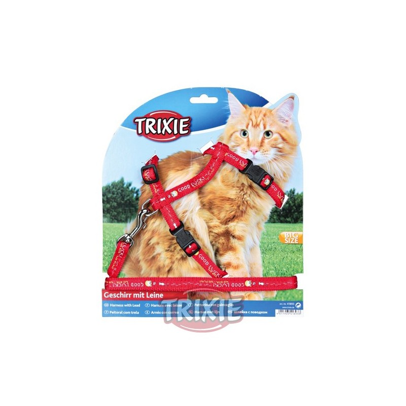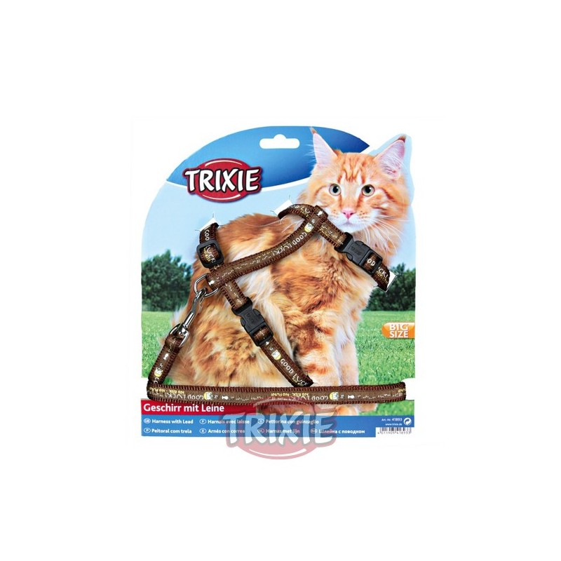 Set arnes y correa con cinta de diseño para gatos grandesRecipiente :