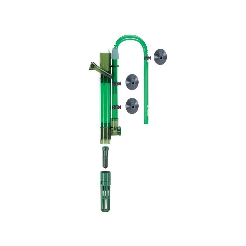 El aparato puede ser conectado a cualquier filtro exterior en lugar del tubo de aspiración. Para filtros EHEIM más grandes es necesario emplear un elemento de reducción en T como pieza de unión. Adaptable a manguera de 12/16