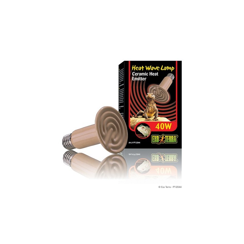 La Lámpara Heat Wave de Exo Terra es una fuente de calor radiante que genera un calor parecido al del sol con un patrón uniforme. Las ondas infrarrojas de calor producidas por esta lámpara suministrarán calor a los reptiles de forma efectiva. También aumenta la temperatura del aire en el terrario. El calor infrarrojo penetra las escamas y losRecipiente :
