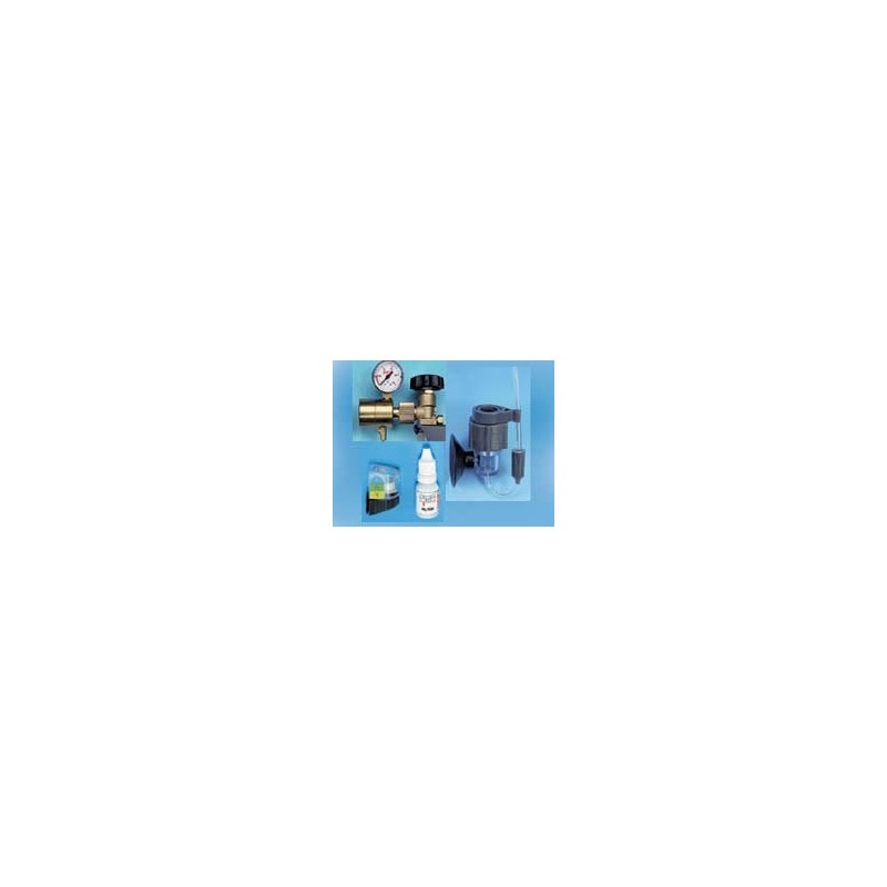 Equipo estándar se compone de reductor de presión, manómetro, reactor y test permanente de CO2. No incluye la bombona de CO2