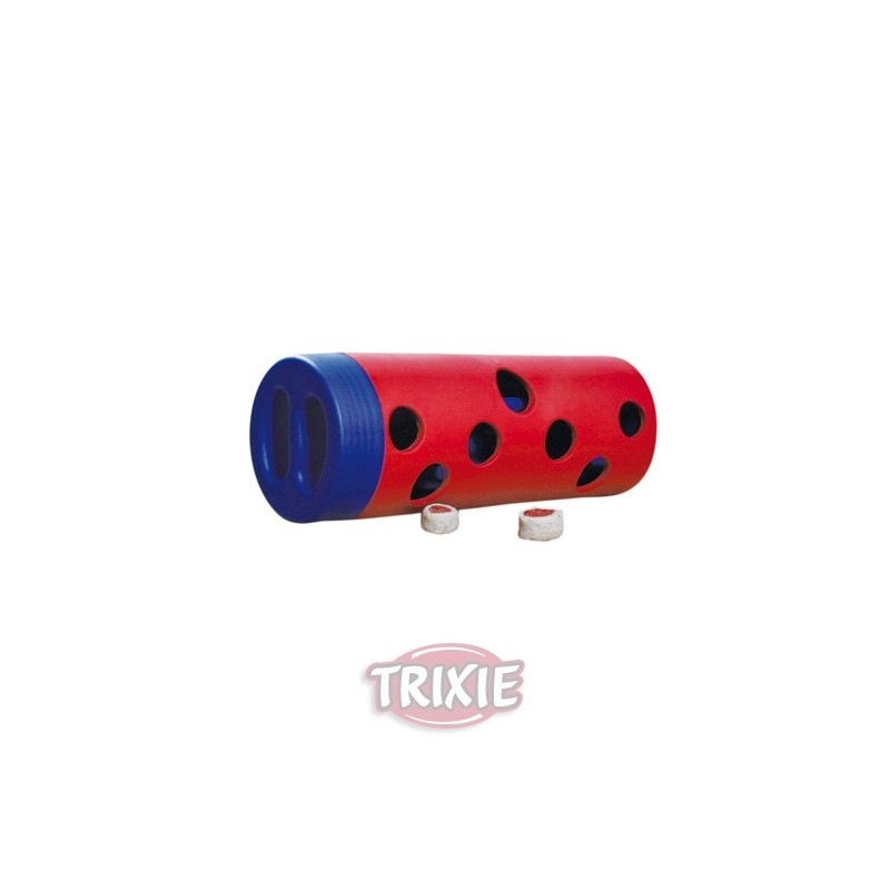 - Nivel 1 de dificultad (Principiantes). - Medidas: · Diámetro: 5 - 6 cm. · Largo: 14 cm. - Revestimento de caucho. - Interior con laberinto de plástico para dificultar la salida de los snacks de Premio. - Desmontable para facilitar la limpieza y la introducción de los snacks de Premio. - Con 3 barras extraíbles. La gama Dog Activity de Trixie está creada para saciar el instinto curioso y desarrollar la inteligencia de los perros. No sólo es imprescindible su entrenamiento físico mediante el juego, sino que también es muy importante ofrecerles refuerzo y apoyo mental para ayudar decisivamente a su educación. ¡Vigila a tu perro mientras juega! NOTA IMPORTANTE: en estos juegos no existe lo correcto o lo incorrecto. Cada perro, al igual que las personas, tiene una manera diferente de hacer las cosas.