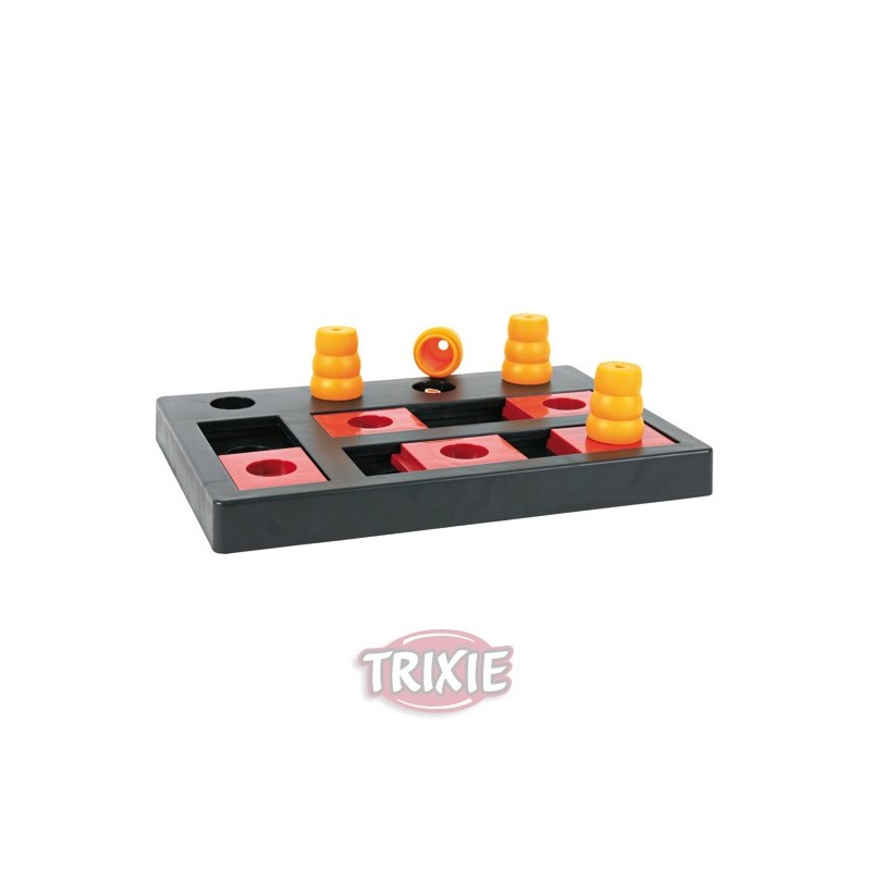 - Nivel 3 de dificultad (Expertos). - Medidas: · Ancho: 40 cm. · Alto: 10 cm. · Profundo: 27 cm. - Hecho de plástico. - Materiales sin riesgo de salud para tu perro. - Adecuado para perros suficientemente experimentados con los niveles previos de Dog Activity de Trixie. - Base antideslizante. - Desarrollado por el educador alemán Jens Reinhold. - Incluye consejos y trucos para educar a tu perro de forma divertida y adecuada. La gama Dog Activity de Trixie está creada para saciar el instinto curioso y desarrollar la inteligencia de los perros. No sólo es imprescindible su entrenamiento físico mediante el juego, sino que también es muy importante ofrecerles refuerzo y apoyo mental para ayudar decisivamente a su educación. El NIVEL 3 de dificultad se recomienda para perros suficientemente experimentados en los juegos de Niveles 1 y 2, notando una demanda por su parte para nuevos retos. En el juego Dog Activity Chess, los conos y las válvulas deslizantes ocultan los snacks de Premio. Tu perro debe levantar los conos y desplazar las válvulas deslizantes alternativamente y de la forma adecuada, de ahí su dificultad, para que pueda descubrir todos los sancks de Premio. Para entrenarle de forma progresiva, oculta los premios en la parte externa e interna del tablero, de modo que tu perro obtenga éxito más rápidamente. Una vez que tu perro haya aprendido a combinar los primeros conos y válvulas al mismo tiempo para jugar, podrás aumentar progresivamente la dificultad. El juego se debe limpiar con regularidad (las piezas de plástico se pueden meter en el lavavajillas). ¡Vigila a tu perro mientras juega! NOTA IMPORTANTE: en estos juegos no existe lo correcto o lo incorrecto. Cada perro, al igual que las personas, tiene una manera diferente de hacer las cosas.