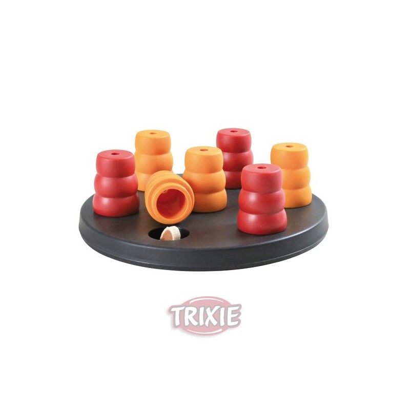 - Nivel 1 de dificultad (Principiantes). - Medidas: · Diámetro: 20 cm. - Hecho de plástico. - Especialmente indicado para perros pequeños. - Adecuado para perros que empiezan a ser educados. - Base antideslizante. - Incluye consejos y trucos para educar a tu perro de forma divertida y adecuada. La gama Dog Activity de Trixie está creada para saciar el instinto curioso y desarrollar la inteligencia de los perros. No sólo es imprescindible su entrenamiento físico mediante el juego, sino que también es muy importante ofrecerles refuerzo y apoyo mental para ayudar decisivamente a su educación. El juego Dog Activity Solitario es el juego clásico de inteligencia para perros. Se compone de un tablero con 7 conos de colores. Debajo de los conos de plástico se oculta el snack de Premio que el perro debe buscar. El desafío especial con este juego consiste en el hecho de que los conos están insertados en pequeñas hendiduras. Tu perro por lo tanto tendrá éxito cuando descubra los conos del color que esconden su recompensa. Solamente con el levantamiento correcto de los conos tu perro obtiene su snack de Premio. El juego debe ser limpiado con regularidad (los conos de plástico son aptos para lavavajillas). ¡Vigila a tu perro mientras juega! NOTA IMPORTANTE: en estos juegos no existe lo correcto o lo incorrecto. Cada perro, al igual que las personas, tiene una manera diferente de hacer las cosas.
