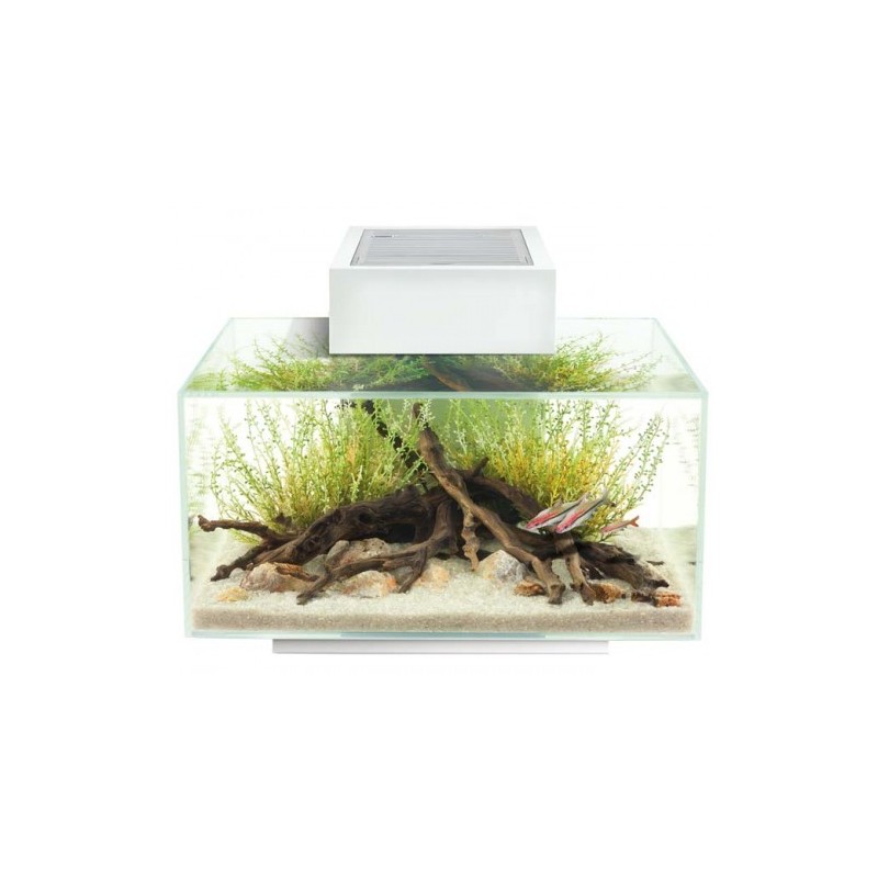 El sistema de filtrado potente con que cuentan los acuarios Fluval Edge están ocultos a la vista, de este modo no se va a ver alterado la armonía del acuario, pero serán de muy fácil acceso cuando sea necesario realizar algún mantenimiento al filtro por lo que no tendrás ningún problema. Estarán situados en la parte superior de la única zona opaca del acuario por lo que no va a quitarle elegancia al acuario, sino al contrario.