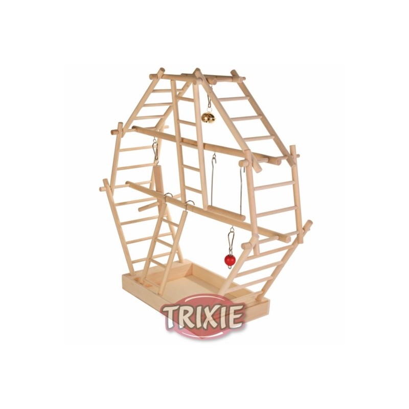 - Medidas: · Ancho: 44 cm. · Alto: 44 cm. · Profundo: 16 cm. - Apto para periquitos y canarios. Esta área de juego pertenece a la gama Natural Living de Trixie para pájaros y roedores. Esta colección cuida la salud de la mascota gracias a que son accesorios de materiales de la naturaleza, que no son tratados con sustancias aditivas. NOTA: Resulta muy importante mantener a los pájaros entretenidos con juegos para que no se aburran, lo que provoca problemas de picaje (al no tener actividad, los pájaros suelen picar sus plumas por estrés).