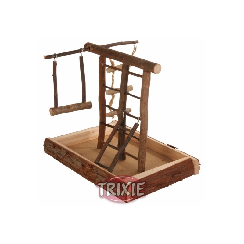 - Medidas: · Ancho: 28 cm. · Alto: 25 cm. · Profundo: 22 cm. - Apto para periquitos y canarios. - Muy útil para el ejercicio de la mascota en la jaula. - Adecuado para el enriquecimiento ambiental del entorno, logrando el bienestar de la mascota. Este área de juego pertenece a la gama Natural Living de Trixie para pájaros y roedores. Esta colección cuida la salud de la mascota gracias a que son accesorios de materiales de la naturaleza, que no son tratados con sustancias aditivas. NOTA: Resulta muy importante mantener a los pájaros entretenidos con juegos para que no se aburran, lo que provoca problemas de picaje (al no tener actividad, los pájaros suelen picar sus plumas por estrés).