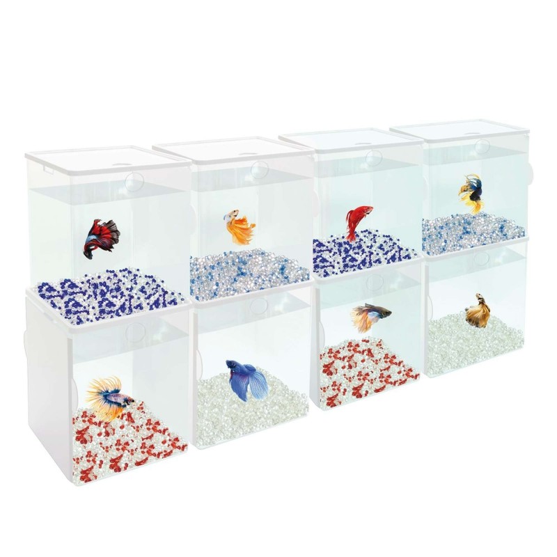 Elegantes y prácticas beteras plástica con iluminación LED en la tapa, tiene cómodas aberturas para alimentación en tapa superior y frontal. Dispone de unos separadores entre las beteras fácil de quitar y poner. Retírela para ver a su beta en su máximo esplendor.