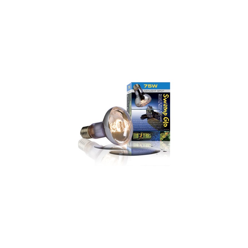 Swamp Glo de Exo Terra es una lámpara de calentamiento resistente a salpicadura y neblina, diseñada para todo tipos de montaje de terrario acuático o extemo húmedo donde la alta humedad o salpicadura accidental de agua puede causar que una lámpara común de calentamiento falle o se rompa. La cubierta externa es hecha de vidrio endurecido de neRecipiente :