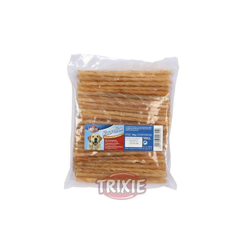 Estos palitos deshidratados de cuero seco son un suplemento a la dieta normal del perro. Están disponibles prensados, en espirales o huesos con nudos.