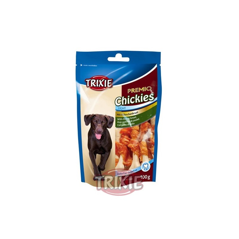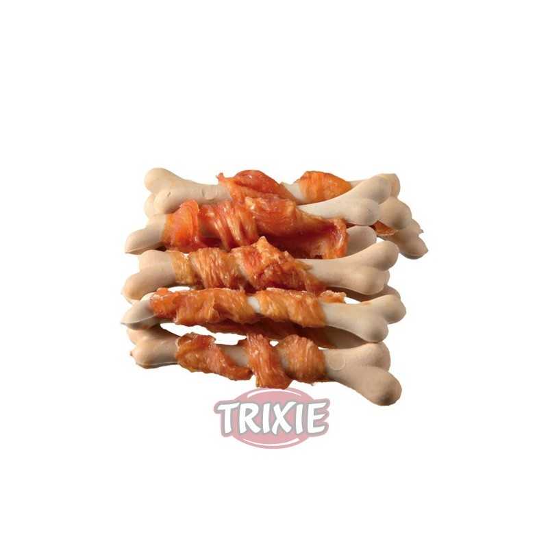 - Peso: 100 g. - Huesos de calcio con pechuga de pollo. - Contenido de carne 61 %. - Sin azúcar añadido. - En bolsa con autocierre.