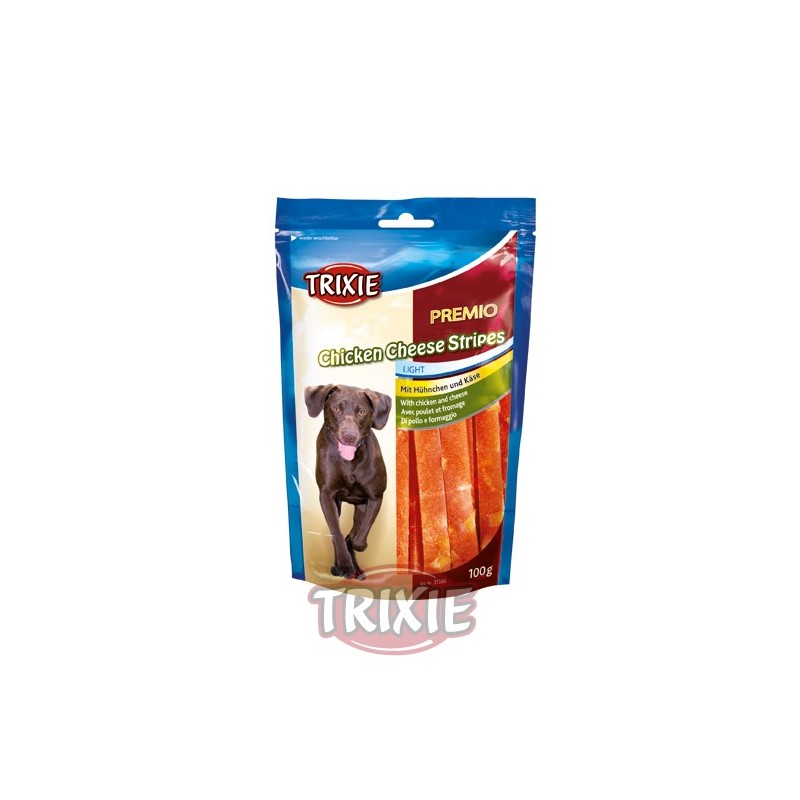 - Peso: 100 g. - Con pollo y queso. - Contenido de carne 81 %. - Rico en proteínas. - Sin azúcar añadido. - En bolsa con autocierre.