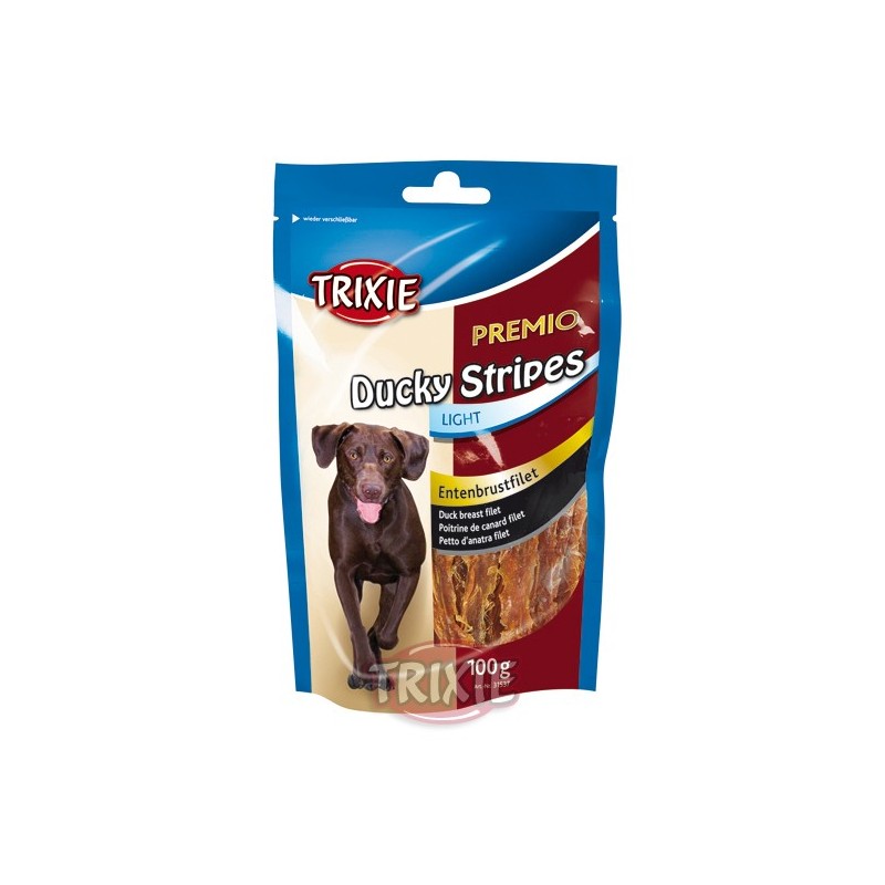 - Peso: 100 g. - Filete de pechuga de pato deshidratado en tiras.. - Contenido mínimo en carne 90 %. - Rico en proteínas. - Sin azúcar añadido. - Sin aromas artificiales. - Sin potenciadores de sabor. - Sin conservantes. - En bolsa con autocierre.
