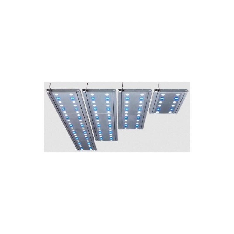 Ocean Light LED twin 2 x 36 Watt (8 x 3 vatios azul y 16 x 3 vatios 12,000 K) Dimensiones (l x w x h): app. 600 x 210 x 25 mm Soporte ajustable para acuarios de longitud entre 600 mm – 800 mm.