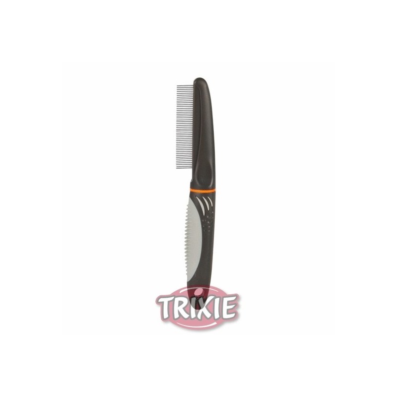 Peine desenredante, perros y gatos, con púas redondas giratorias. Peine desenredante con mango de plástico antideslizante y púas redondas giratorias para cuidar de forma delicada el pelo. Especialmente indicado para el cuidado de la capa superior de pelo y el subpelo.
