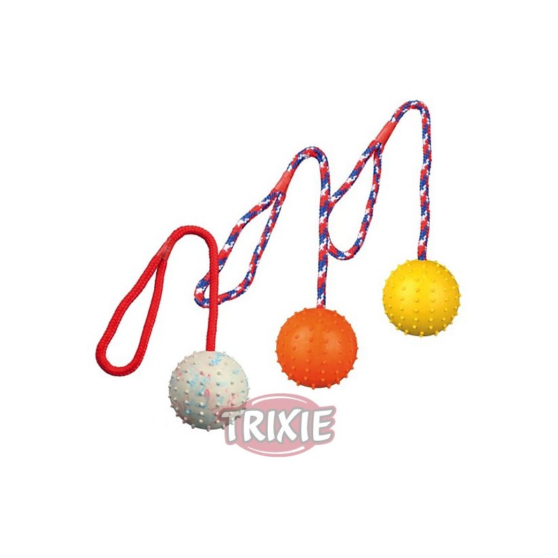 Trixie Pelota con cuerda, caucho natural, ø 7 cm,30 cm