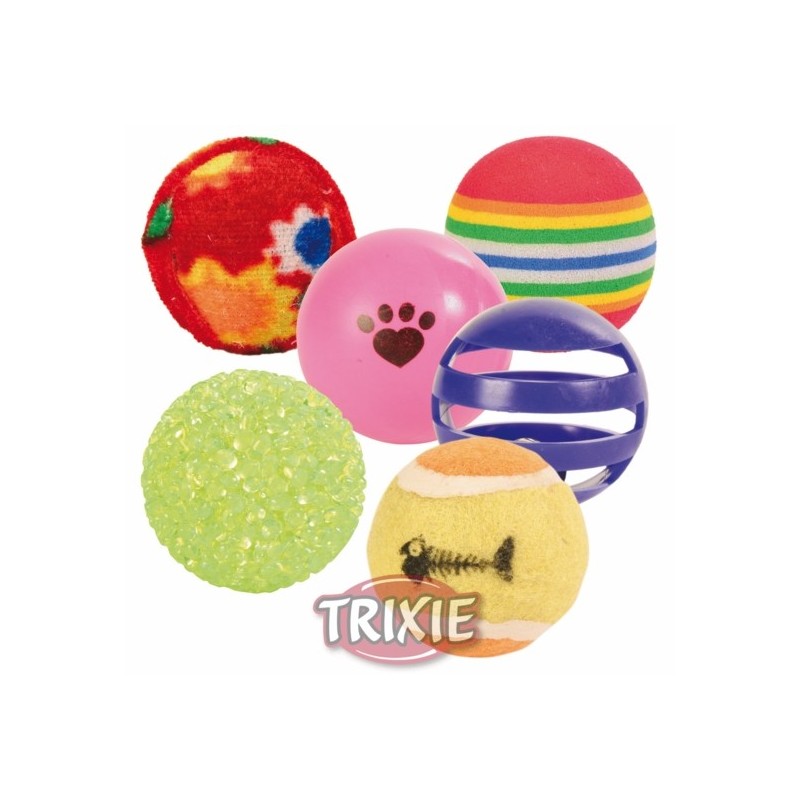 Trixie 6 pelotas surtidas, ø 3, 5-4 cm, color surtido