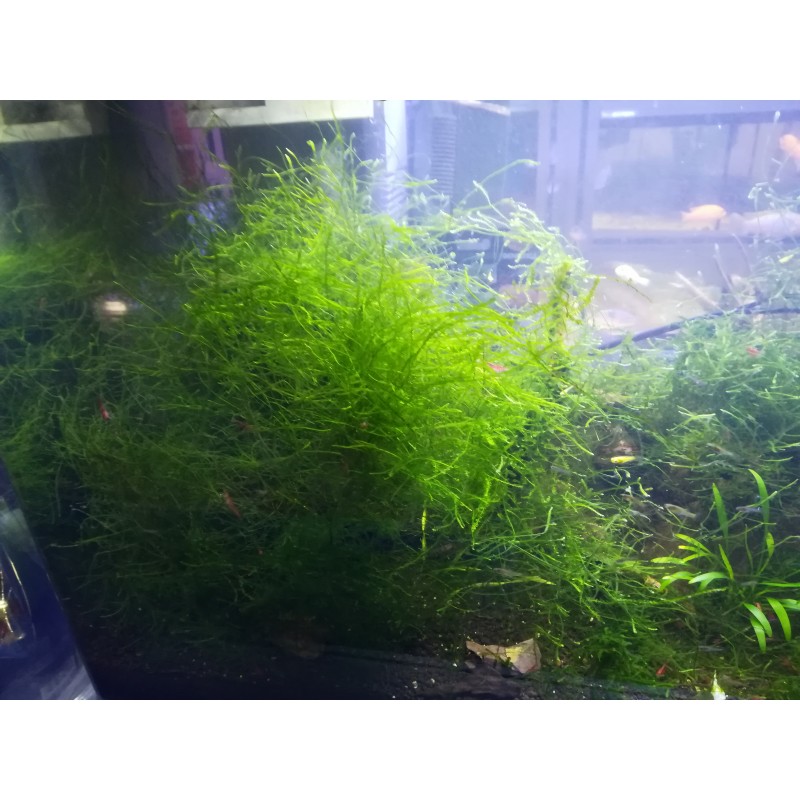 Este es el musgo mas utilizado en acuarofilia gracias a su facilidad de mantenimiento y crecimiento en condiciones de poca luz. Es ideal para los principiantes y crecera rapidamente sobre los troncos y rocas del acuario.