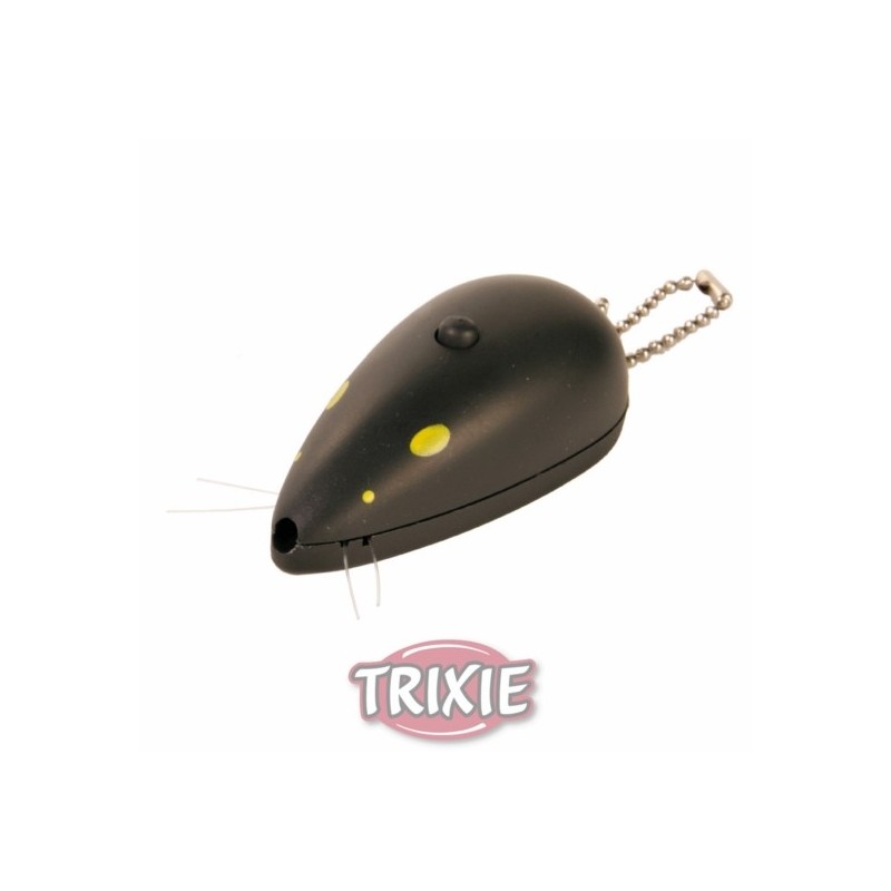 - Longitud: 7 cm. - Hecho de plástico. - Juguete inofensivo para el bienestar de las mascotas. - Rango de longitud de onda: 400-700 nm. - Incluye 3 pilas. - Límite: 1 mW. - Láser: clase 2. Este láser con forma de ratón se va moviendo por el suelo y apuntando con el láser que incorpora en la parte delantera, provocando un gran incentivo de juego para el gato.