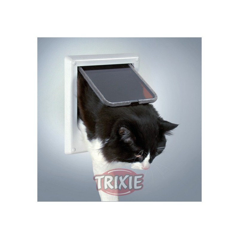 Puerta transp. Gatera Luxe, 4 prog., electromag., silenciosa, incl collar,24,4X21,1 cm. Esta puerta gatera de Luxe es de plástico impermeable de color blanco. Tiene una cerradura de 4 posiciones y está equipada con imanes de anillo que se puede conectar a cualquier collar del gato Trixie. Detalles: . de plástico, resistente a la intemperie . electromagnéticos . mantiene alejados a los visitantes no deseado . acción silenciosa . solapa transparente que protege contra las corrientes de aire, con cierres especiales y cerradura magnética . con collar magnético (se puede conectar a cualquier collar del gato TRIXIE) .3 años de garantía .incl. elemento del túnel, no se incluyen las pilas Se suministra con 4 opciones: solapa completamente abierta solapa completamente cerrada El animal sólo puede salir El animal sólo puede entrar Dimensiones: el tamaño total de 21,1 × 24,4 cm, cortar el tamaño 16,5 x 21,6 cm, el tamaño solapa 14,7 × 15,8 cm, profundidad de instalación de 10 a 35 mm