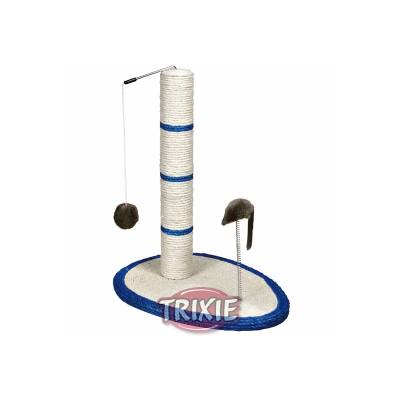 - Medidas: · Superficie: 40 x 30 cm. · Poste: ø 7 cm. · Altura: 50 cm. - Completamente cubierto de sisal natural. - Varilla giratoria con juguete en una banda elástica. - Con juguete sobre un muelle. - Color: varios. Los rascadores sacian los instintos de los gatos y los atraen a jugar en ellos, dejando a un lado muebles o alfombras del hogar.
