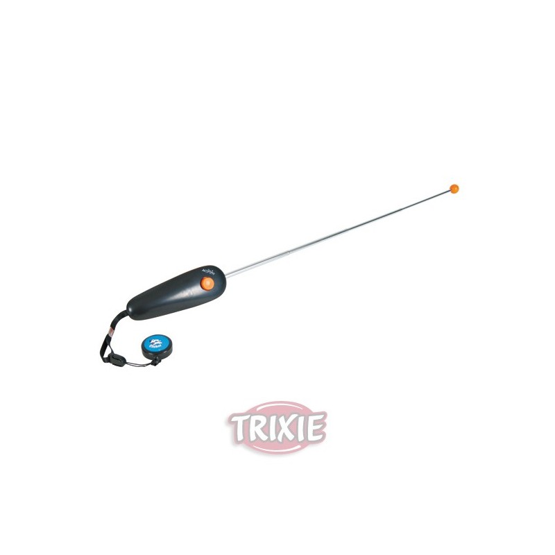 - Retráctil de 14 a 65 cm. - Con clicker integrado. - Con bola en la punta para premiar en el hocico. - Cinturón con cuerda de nylon ajustable. - Adecuado para perros, gatos, roedores y pájaros. - Incluye librito con consejos y trucos para entrenamiento adecuado (en inglés).