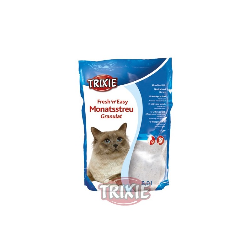 - Gel de silicato. - Absorbe la orina. - Neutraliza el olores. - Muy fácil de usar. - Hecho de materiales 100 % naturales. - Biodegradable. - Efectos antibacterianos. - Economiza gracias a su calidad y duración. - Sin polvo, apto para personas alérgicas. - Contenido: 8 l